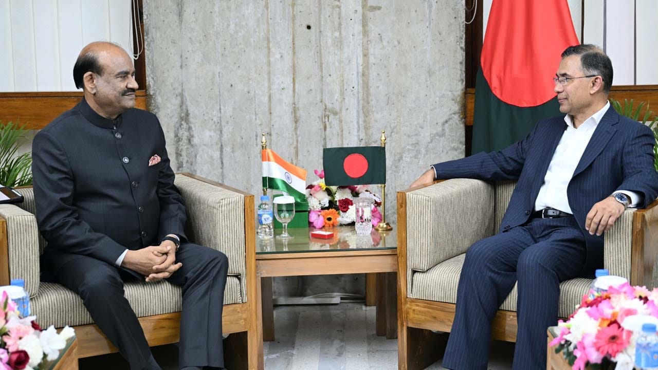 లోక్సభ స్పీకర్ ఓం బిర్లా మంగళవారం (ఫిబ్రవరి 17) కొత్తగా ఎన్నికైన బంగ్లాదేశ్ ప్రధాన మంత్రి తారిఖ్ రెహమాన్ను కలిసి, ప్రధాన మంత్రి నరేంద్ర మోదీ నుండి వ్యక్తిగత అభినందన లేఖను అందజేశారు . భారత ప్రభుత్వం తరపున విదేశాంగ కార్యదర్శి విక్రమ్ మిస్రీతో కలిసి ఓం బిర్లా రెహమాన్ ప్రమాణ స్వీకార కార్యక్రమానికి హాజరయ్యారు. లోక్సభ స్పీకర్ మాల్దీవుల అధ్యక్షుడు, భూటాన్ ప్రధాన మంత్రి సహా ఇతర దేశాల ముఖ్య నాయకులతో కూడా సమావేశమయ్యారు.
